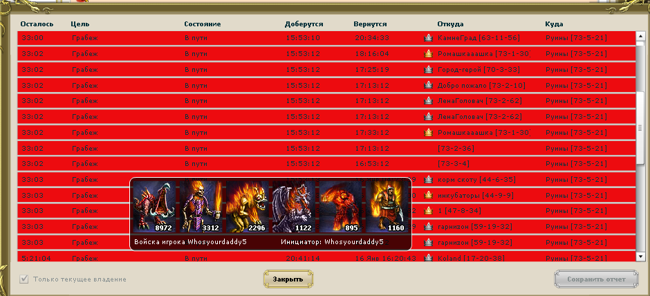 Если в скриншоте финальной битвы нет имени игрока, а написано "ваши войска", то размещать такой скриншот может только автор сноса, либо должно быть обязательно указание - чьи это войска. Неуказание хозяина войск приравнивается к фальсификации и карается баном.
