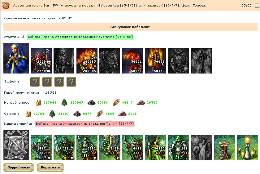 Знаю в чем причина. такое же сегодня обнаружил. Лог боя героя 2лвл. Но навыки у него в логи такие как у гера в нынешнем состояние.(4лвл).Wanja писал(а): это я могу понять таким войском такую мелочь слить не так уж и тяжело да ещё и при наличии хоть и не сильных но всёже артов и заклинаний но не могу понять одного как у героя с 3-м уровнем развиты до 5-го уровня такие эфекты навыков как скорость героя заклинание маги-защитники регенерация маны и пленение душ до второго уровня вот это я никак понять не могу а откуда я это знаю просто у меня есть отчёт этого боя могу и сюда кинуть если попросите для того чтобы убедиться что я ничего не выдумываю