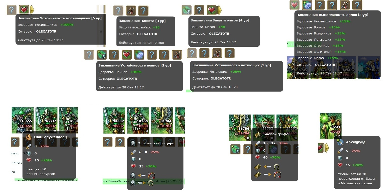 Админы молчат, по поводу что это баг - уверен на все 100% ибо играя на тестовых серверах, все работало как надо! Тут же явно все заклы просто картинки, не +щие свои полезные свойства =( И даже учитывая что с hp какие то вещи не плюсуются, то защита в любом случае должна работать, а ее на моих войсках нету. Да и судя по теме что я создал, не один я такой погарелец с войсками...pavlovi4 писал(а):Олег, по поводу отсуствия защиты и неполного опкаста на здоровье армии, удалось ли получить вразумительный ответ от кого-либо?