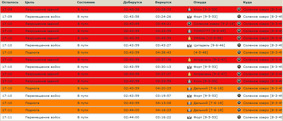 Примерно в то время, когда 11-е плавно переходило в 12-е, начались строиться атаки, первая была из озера татарина. О да. Ну что ж, бой так бой. Я и Кема не дремали, принялись за подрезку волн. Началось рассылание наймов по городам Отчёты почти не сохранились (да и скрины), но получалось у нас это весьма успешно. После трёх или четырёх отбитых таких "ментальным" образом атак началось что-то невнятное. Три следующие атаки народ не пог попасть в секунду, в результате чего через минуты подрезались обе и дальнейшая отправка была бессмыслена.