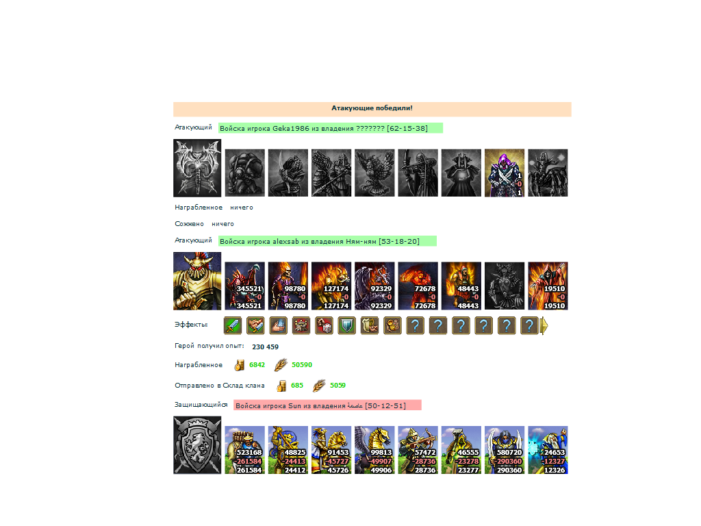 может быть количество наймов не то что бы уменьшилось, а еще и увеличилось:)Mosyya писал(а):последний лог боя явно не верный, не верю чтоб в атаке не умер не один найм....
