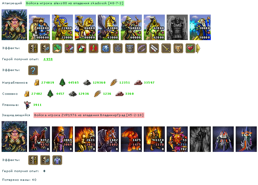 gorynych7 писал(а):1 Топ основа отступа сильно проигрывает на своей земле, своей рассе, плюс правильные бафы герою, плюс толпа наймов с собой, потери будут с обеих сторон, но ты как отступ потеряешь гораздо больше,