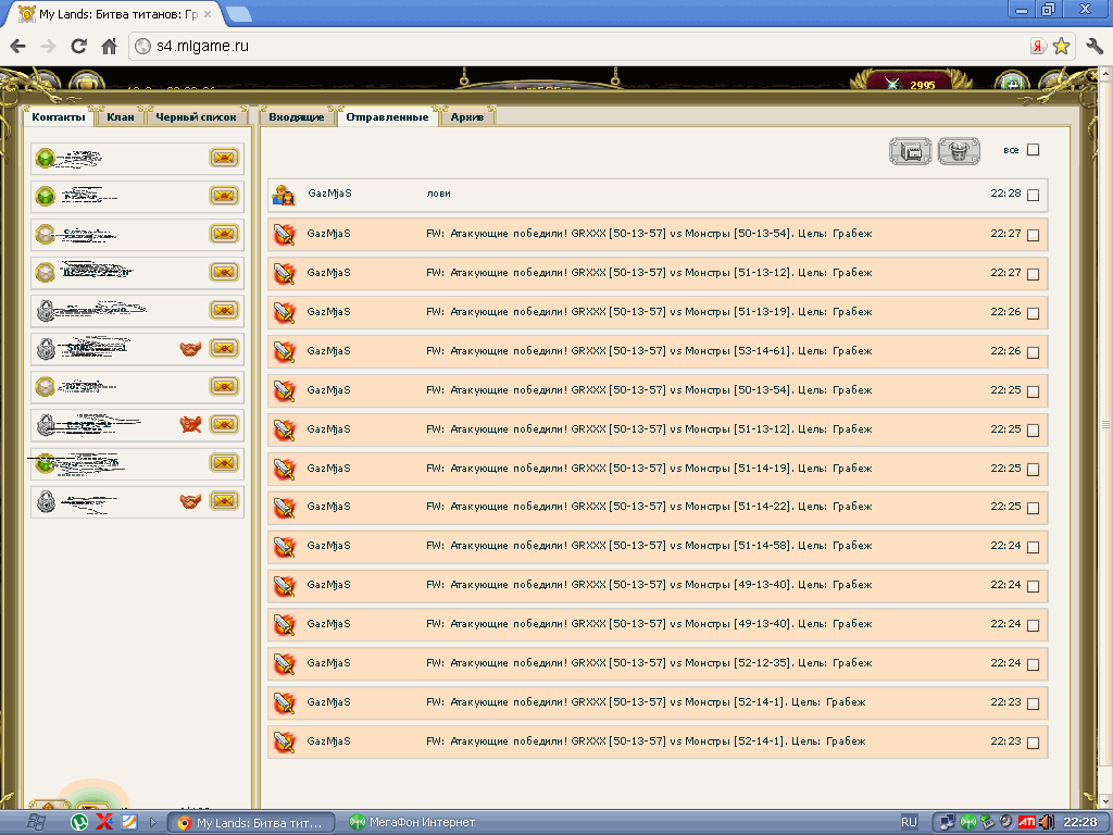 Отвечу по теме,а то пока отдыхал,вижу тут накопилось разных сообщух.Игроку Газмяс были скинуты все руины..в количестве 24 штук суммой на 1к чж (1006 вроде)плюс.Деньги мне были переведены 3к рублей протекцией,но потом отозваны назад.После этого я добавил этого игрока в черный список и не веду с ним никаких переговоров.Как говорится..умей проигрывать.Отвечаю на вопросы игроков на различные игровые темы в личке,форуме или скайпе.