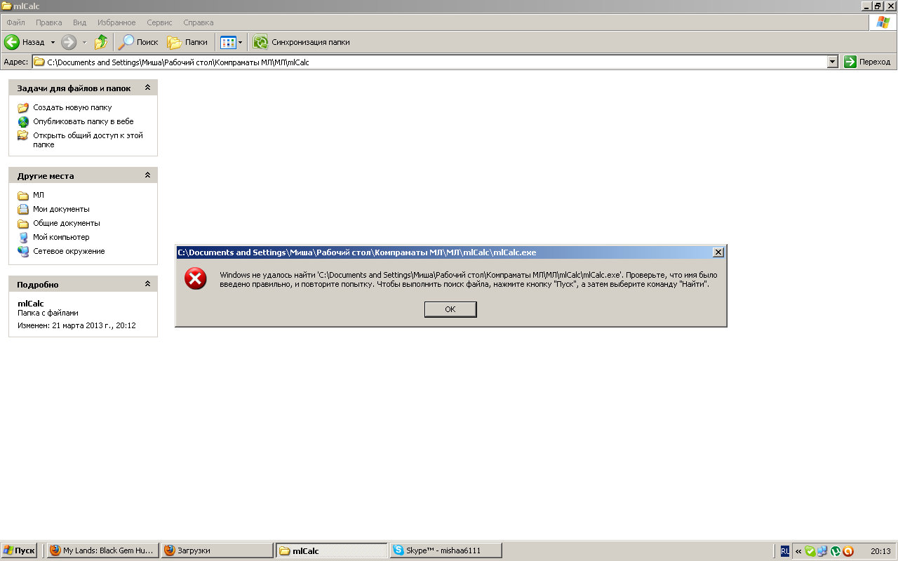 Создай на любом диске папку mlCalc
