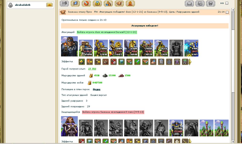Про всех "Храмящихся" и Тех кто при первом шпике прятал армию в подвал я промолчю... и не буду кидать отчеты где я тоннами выносил ресы из столиц топовых по мощи игроков клана Predators. Додам один слив - чувак просто не читал чат клана наверное или был слишком самоуверен (я предполагаю в чате писали о моем присутсвии неоднократно) , к сожалению "самоувереность улетучелась" в последний момент... армию в полтора раза больше моей с кучей найма - спрятал в подвал... но пойманый возврат естественно я слил...