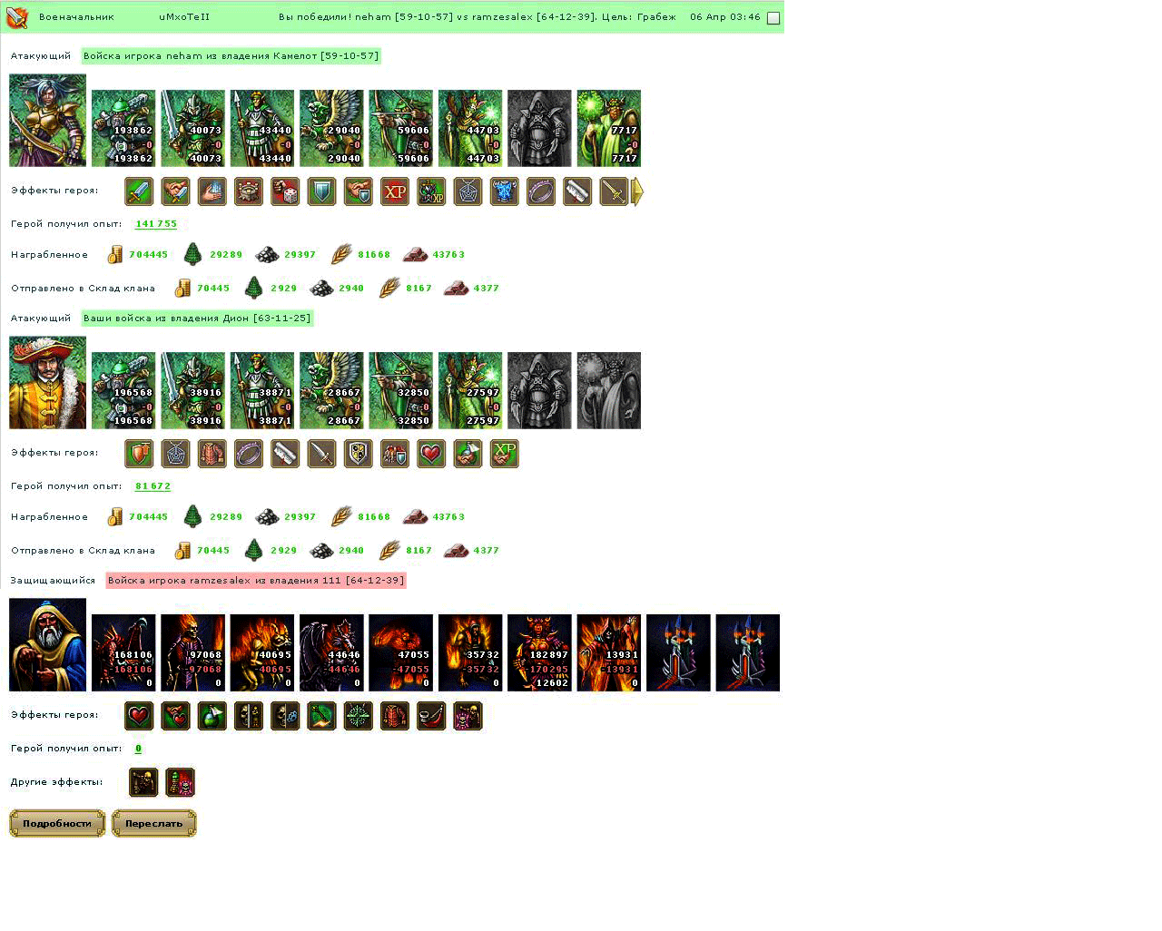 о я тогда к Ирке в клан пойдуneham писал(а):Насколько помню было предложение отменить медлы и храмы, на медлы мы не согласились, так как мерси и АЭ не самые сильные наши противники, есть еще Спарта Вкин Игорь и многие другие. А вот без храма можно было бы поиграть. Давно был разговор про это, но как то не пришли к общему знаменателю.kvest777 писал(а):А че ира не согласилась играть без храма?