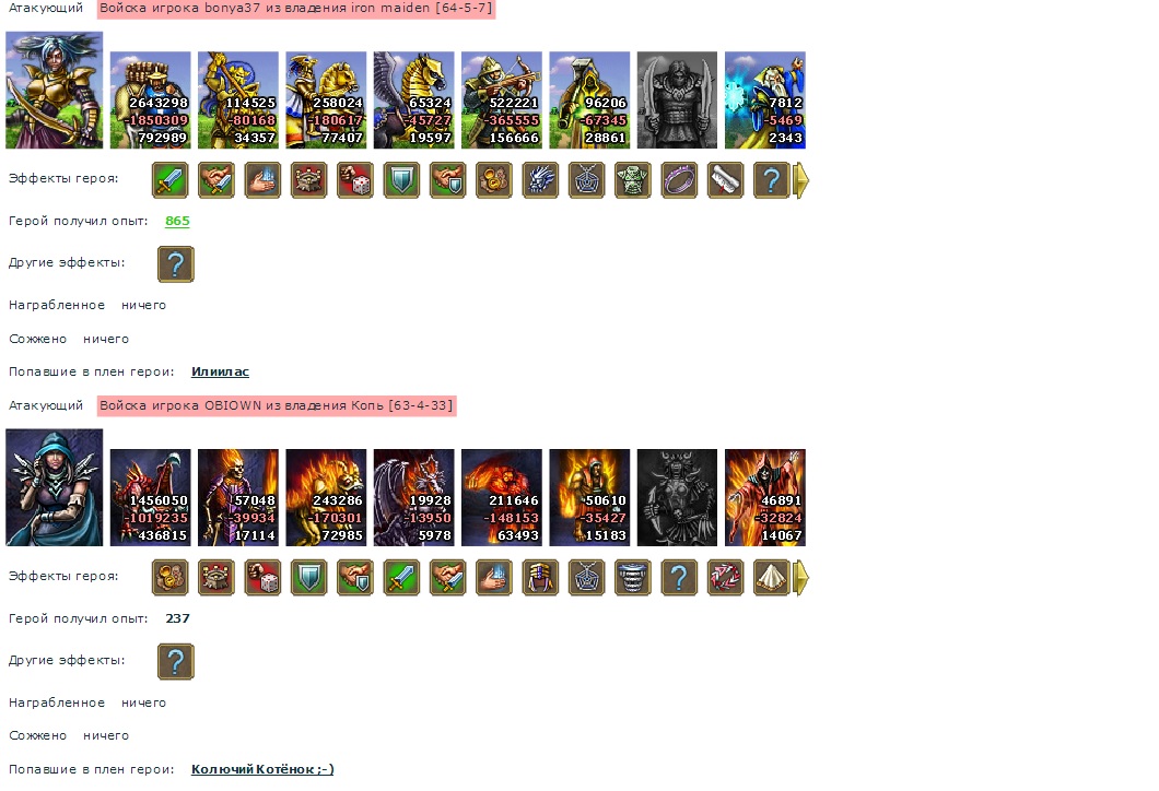 тут кидаю логи где есть войска как у атакующих так и у деферов а не пустую трату времени и разрухи поселков или пустого замка