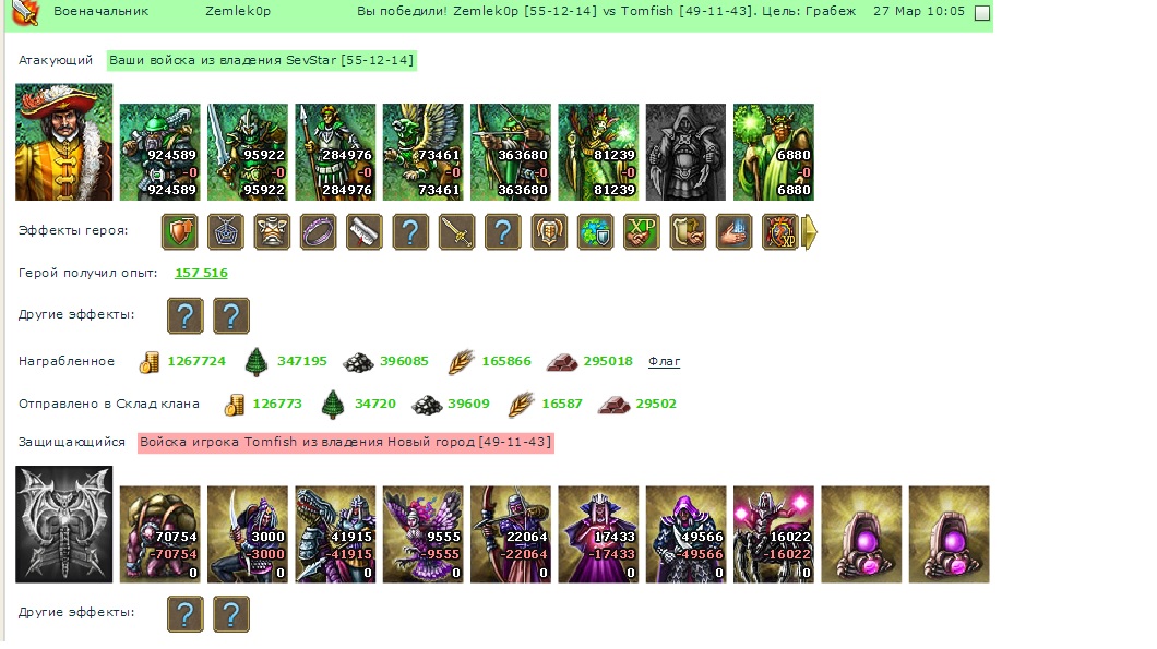 тут кидаю логи где есть войска как у атакующих так и у деферов а не пустую трату времени и разрухи поселков или пустого замка