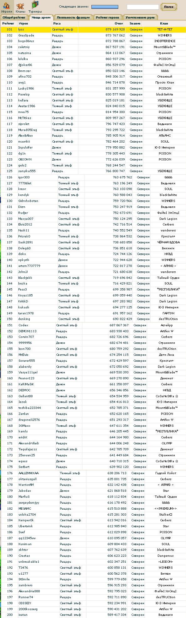 мощь: + 3 клана в топ-50