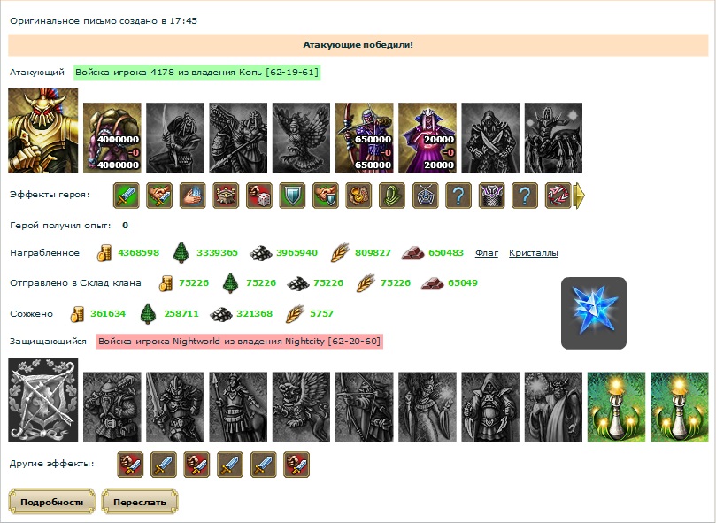 Да неужели? Насколько я знаю, все официальные заявления были о том, что я не играю на аккаунте Nightworld, потому что это так и есть, с момента блокировки вывода на нём играю не я...))) Но то что игрок позицианирующий себя как топ преподносит как великое достижение победу над когда то бывшим моим акком без армии не может не радовать4178 писал(а):А сегодня мы ходили в гости к знаменитому игроку нашего сервера, проживающему в городе с московским временным поясом, но очень любящим ночные атаки "пока все спят", публично заявляющему, что играет на 2-х аккаунтах, а по не официальным данным, организовавшем в своём клане совместный доступ к основным аккаунтам клана при помощи программ удалённого доступа![]()