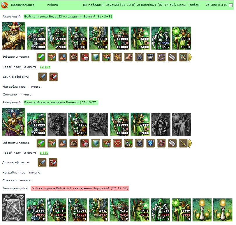 Господа Боев и Нехам, вам не скучно играть? все отчеты парные, ни одной одиночной атаки не увидел(может быть какуюто просмотрел конечно, но в большинстве своем), и как правило на игроков в офее. при подмоге отменяетесь, при невозможности пробить, тоже отменяетесь. А какже риск, а какже дух авантюризма???