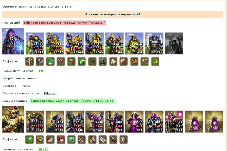 Нууу,бой дня...imas777 писал(а):там в подвале 200 к луков и 1 лям наймов, + герой с 50% ужаса, так что мы не парились, не обольщайся )