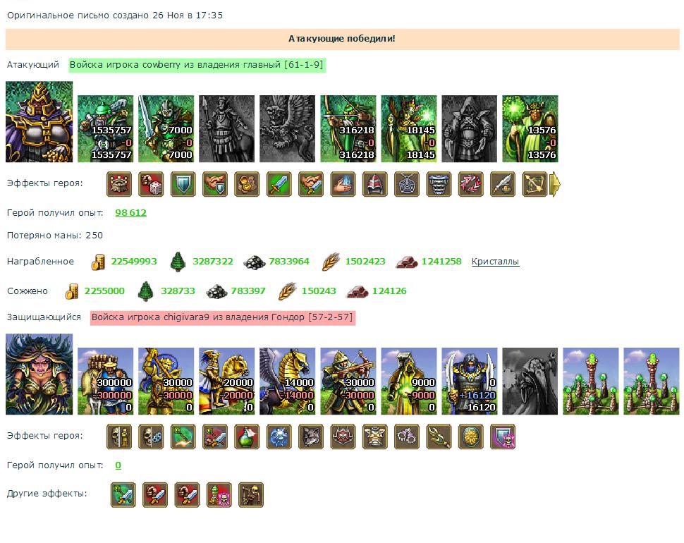 немного не повезло что войска по минимуму ударили... так бы результат был бы поприятней.. но учитывая что перемещал войска на глаз( не было времени на кальке прикидывать..считал уже после перемещения), то вполне неплохо.. мои потери с учетом воскреса составили почти 300к луков..shtogr писал(а):топ-3 по МА, в один миг стал топ-77 по МА... у атакующего свиток "Осторожность в нападении"