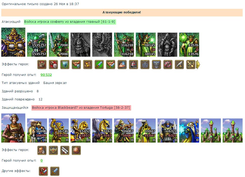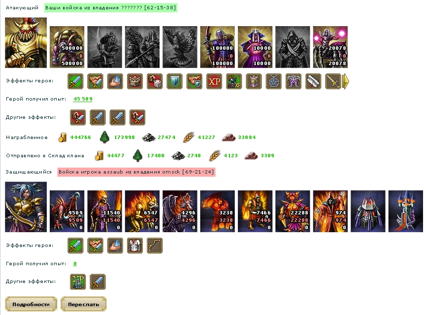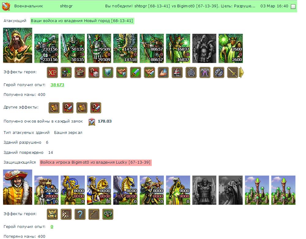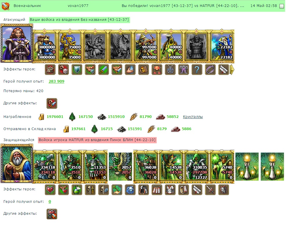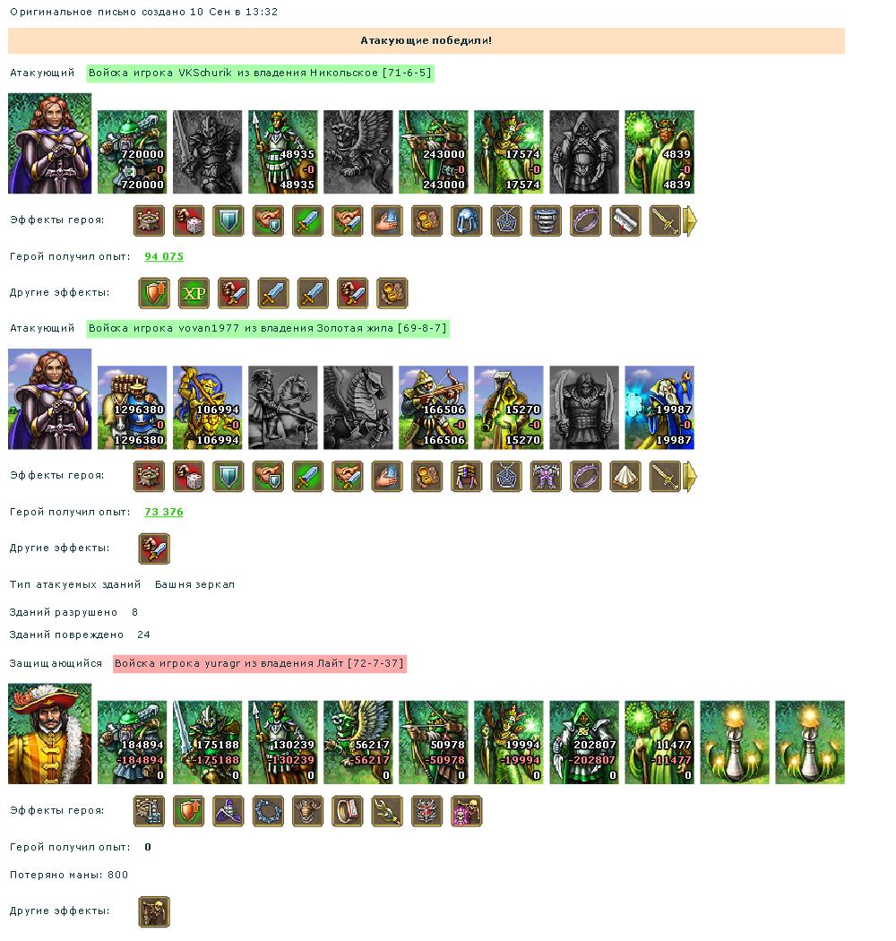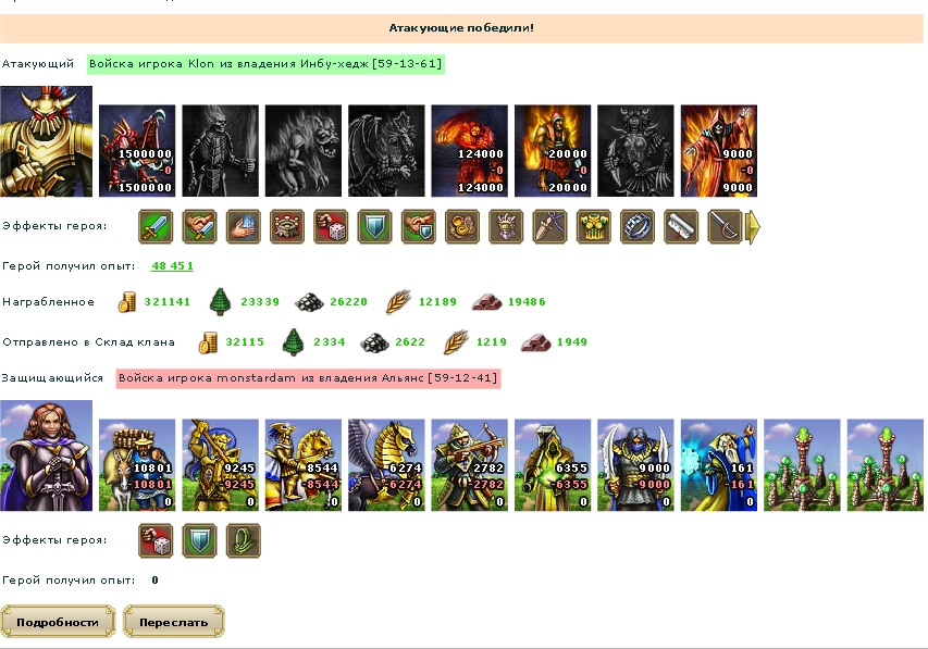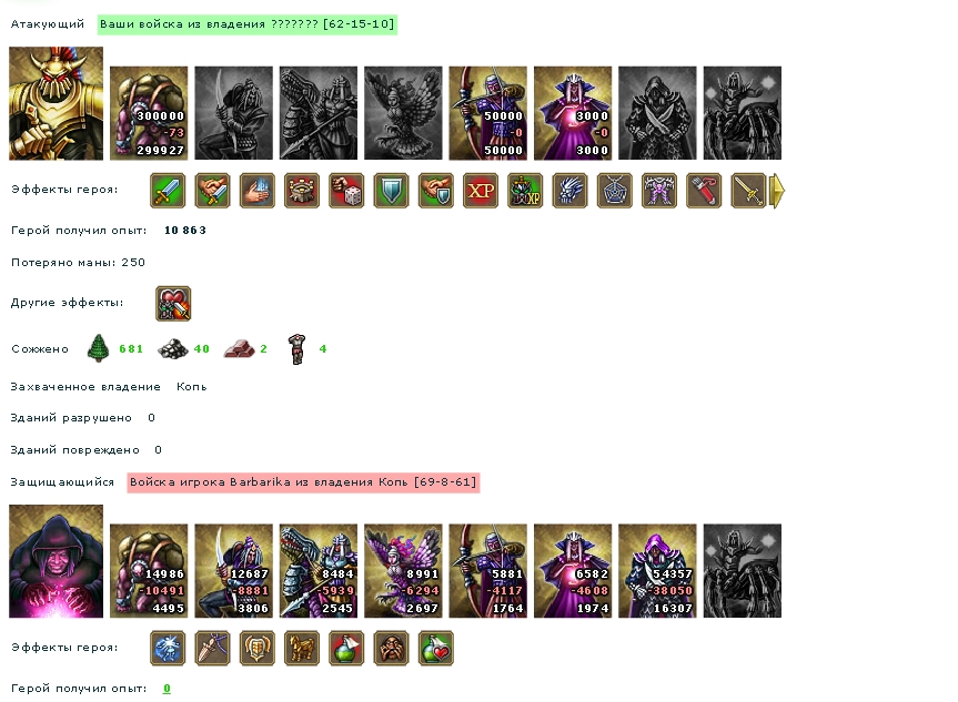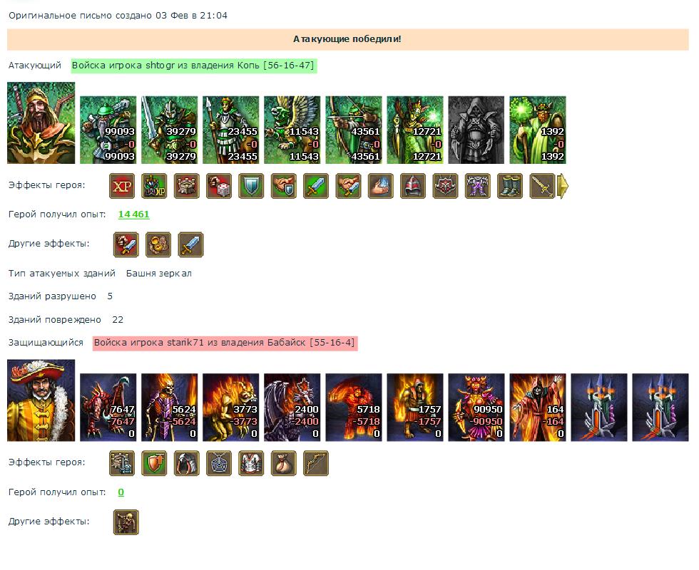 немного не повезло что войска по минимуму ударили... так бы результат был бы поприятней.. но учитывая что перемещал войска на глаз( не было времени на кальке прикидывать..считал уже после перемещения), то вполне неплохо.. мои потери с учетом воскреса составили почти 300к луков..shtogr писал(а):топ-3 по МА, в один миг стал топ-77 по МА... у атакующего свиток "Осторожность в нападении"