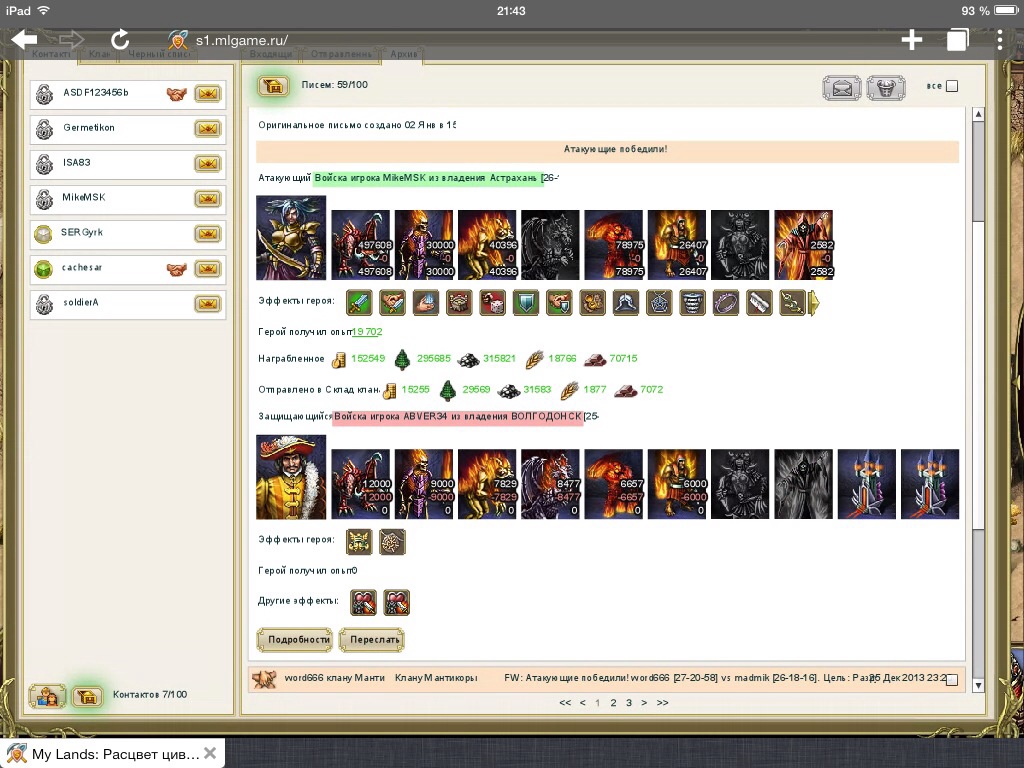 Думаю есть что добавить. Пошли ломать склад клана у мантикор. Обкастовались просто так, что бы сокры почистить, кроме меня. Я обкастовался, когда в подмогу вставал по полной. Знали что мантикорыши зассат и бой не примут. Так и случилось. Они зассали и бой не приняли, отдали клан замок Герметикону. Ну и получилось, что получилось. Свою задачу мы выполнили и даже перевыполнили. Шли ломать 1 здание, а в итоге в кланзамке осталось только 4 здания. аА потери восполнятся в течение пары месяцев