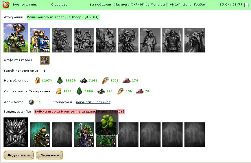 Похвастаюсь и я.Правда за 1,5 года все 3 арта! Тем более что герой был не разведчик (Шапка кочевникавообще чистая, а для меча был использован свиток). Сейчас разведчик 100% но пока с ним 1 арт +20% к гибели следака.1й арт продал в кредит как ненужный