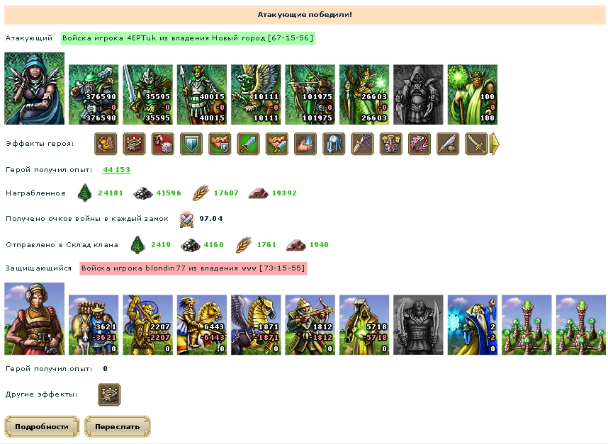 немного не повезло что войска по минимуму ударили... так бы результат был бы поприятней.. но учитывая что перемещал войска на глаз( не было времени на кальке прикидывать..считал уже после перемещения), то вполне неплохо.. мои потери с учетом воскреса составили почти 300к луков..shtogr писал(а):топ-3 по МА, в один миг стал топ-77 по МА... у атакующего свиток "Осторожность в нападении"