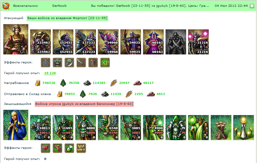 А вообще, лично у меня есть один простой критерий успешности лога - потери защиты должны превышать потери атаки без учета найма по причине кучи способов его быстрого набора.