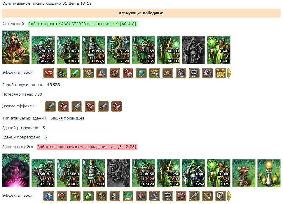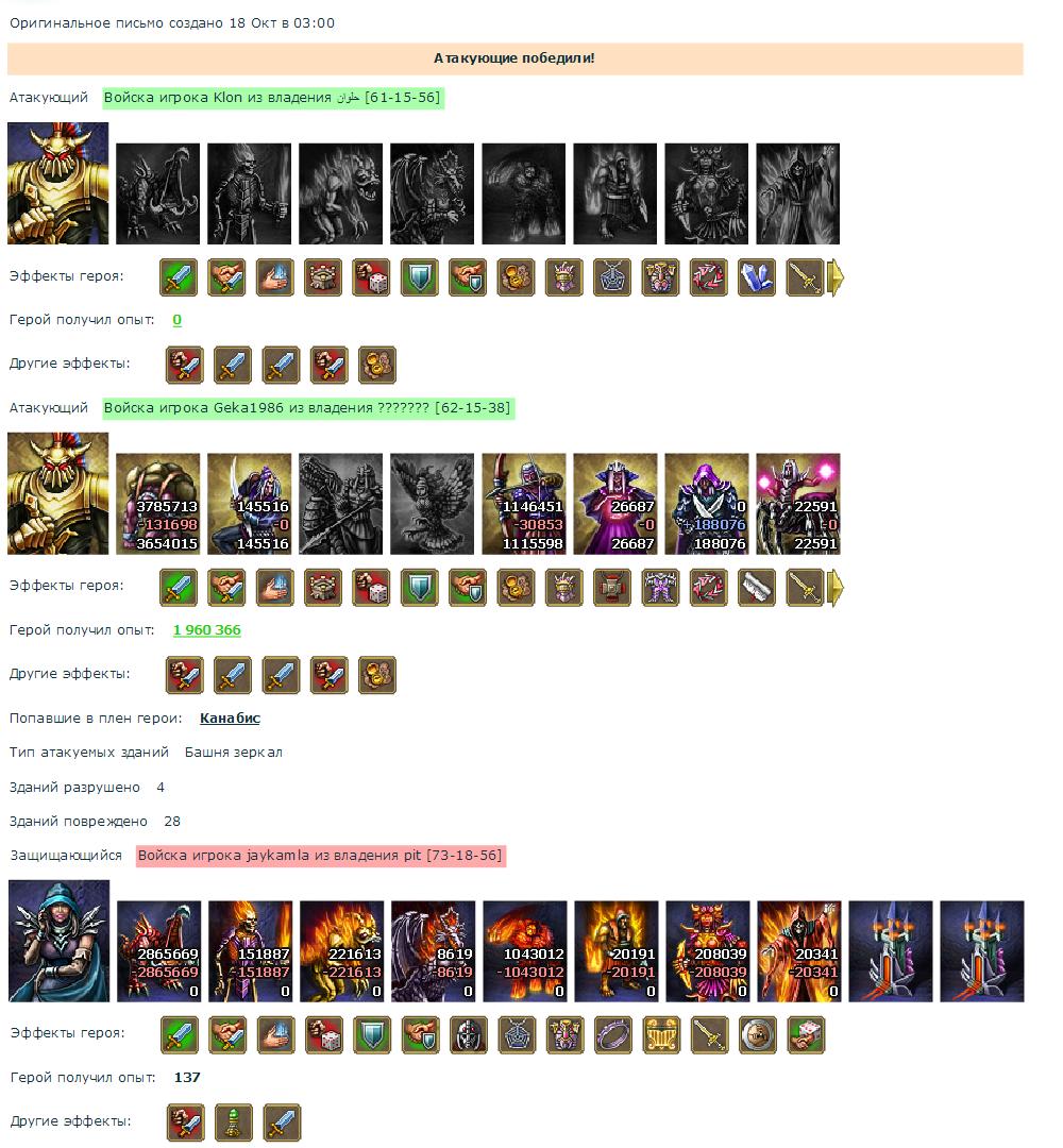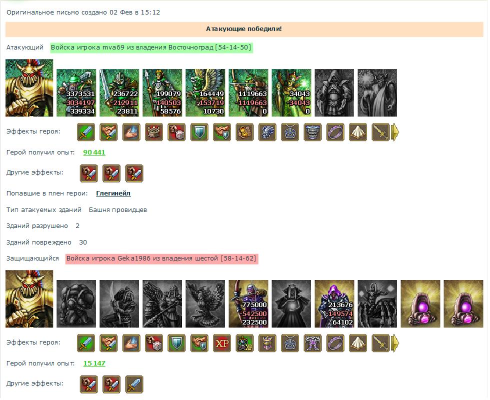 немного не повезло что войска по минимуму ударили... так бы результат был бы поприятней.. но учитывая что перемещал войска на глаз( не было времени на кальке прикидывать..считал уже после перемещения), то вполне неплохо.. мои потери с учетом воскреса составили почти 300к луков..shtogr писал(а):топ-3 по МА, в один миг стал топ-77 по МА... у атакующего свиток "Осторожность в нападении"