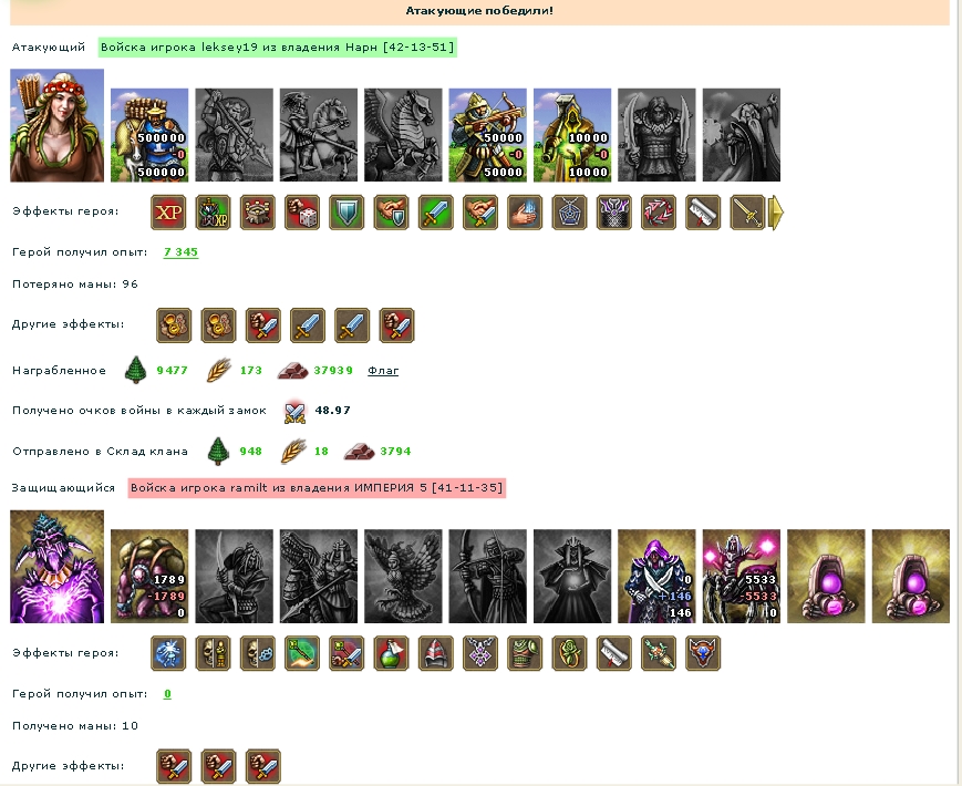 немного не повезло что войска по минимуму ударили... так бы результат был бы поприятней.. но учитывая что перемещал войска на глаз( не было времени на кальке прикидывать..считал уже после перемещения), то вполне неплохо.. мои потери с учетом воскреса составили почти 300к луков..shtogr писал(а):топ-3 по МА, в один миг стал топ-77 по МА... у атакующего свиток "Осторожность в нападении"