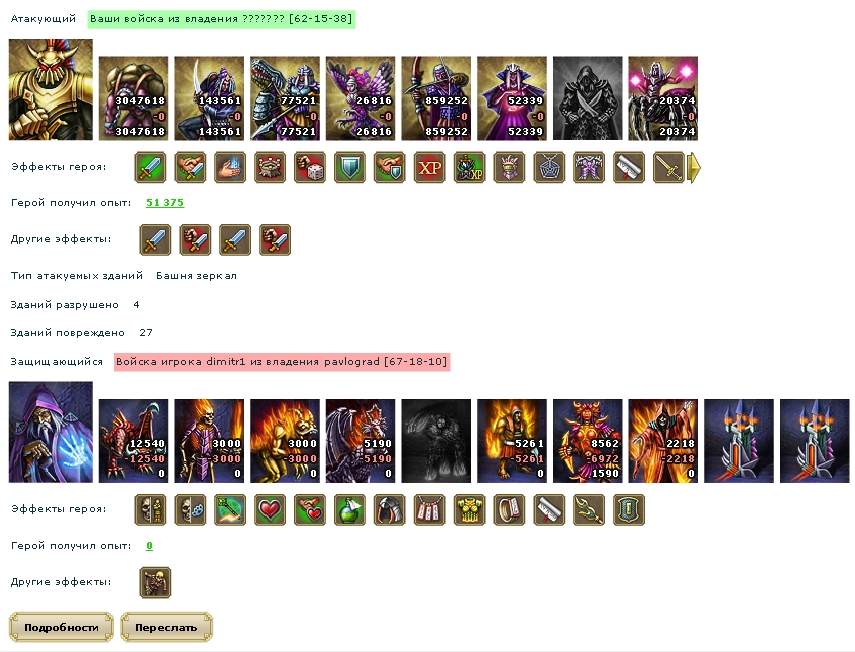 немного не повезло что войска по минимуму ударили... так бы результат был бы поприятней.. но учитывая что перемещал войска на глаз( не было времени на кальке прикидывать..считал уже после перемещения), то вполне неплохо.. мои потери с учетом воскреса составили почти 300к луков..shtogr писал(а):топ-3 по МА, в один миг стал топ-77 по МА... у атакующего свиток "Осторожность в нападении"