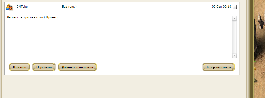 albrekxt писал(а):армия была твоя. я с опозданием но атачил. хотя и предупреждал что не успею к времени. но могло ведь быть и наоборот. и глупо бы было мне потом обвинить кого либо в сливе моей армии