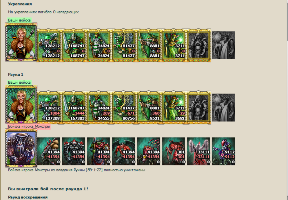 Только после того как сделал все необходимые действия для безопасного и быстрого похода я смог выехать дальше и неспеша тянутся в пробке на свою любимую работу. Добравшись в офис и немного успокоив свое волнение, захожу в игру и проверяю как идет поход, к моей радости, все проходит спокойно и без происшествий. И вот приходит долгожданное сообщение о столкновении моих войск во главе которых стояла доблестный герой "воительница". Как показал отчет боя, несметные полчища монстров, которыми меня пугал "ИУДА", по факту оказались не такими страшными (не так страшен черт, как его рисуют