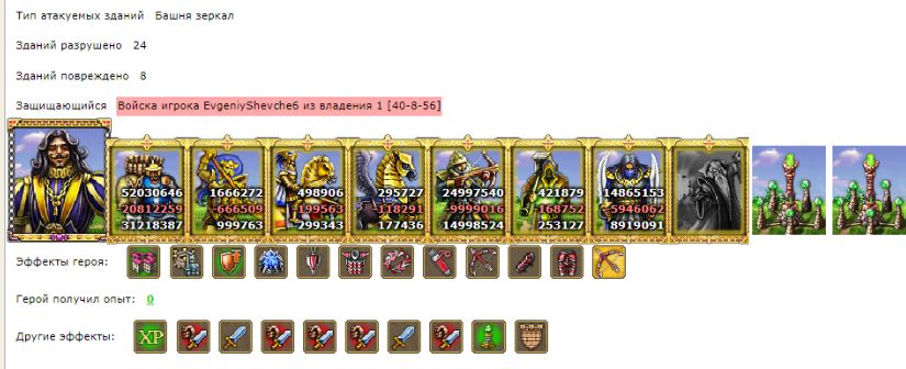 Поход длился 22 минуты, шли на +85%, каст у нас был почти максимальный (осадки, бесстрашие), защитника в максимальном касте мы проходили, с двумя местными подмогами. Защитник в невидимом бараке прятал боевого героя с кастом, судя по времени каста он был в сети с самого начала атаки. За несколько минут до контакта, боевого героя в сильном касте (с бесстрашием) пригнали в стол, но посчитав платником и увидев, что не тащат, отменили подмоги и армию защиты кинули куда-то в поход. Ну, мы подумали, что просто диверсий занесём, как и планировалось, но неожиданно армия защитника вернулась прямо под нашу атаку. Не в курсе, что было тому причиной, в любом случае, мы довольны