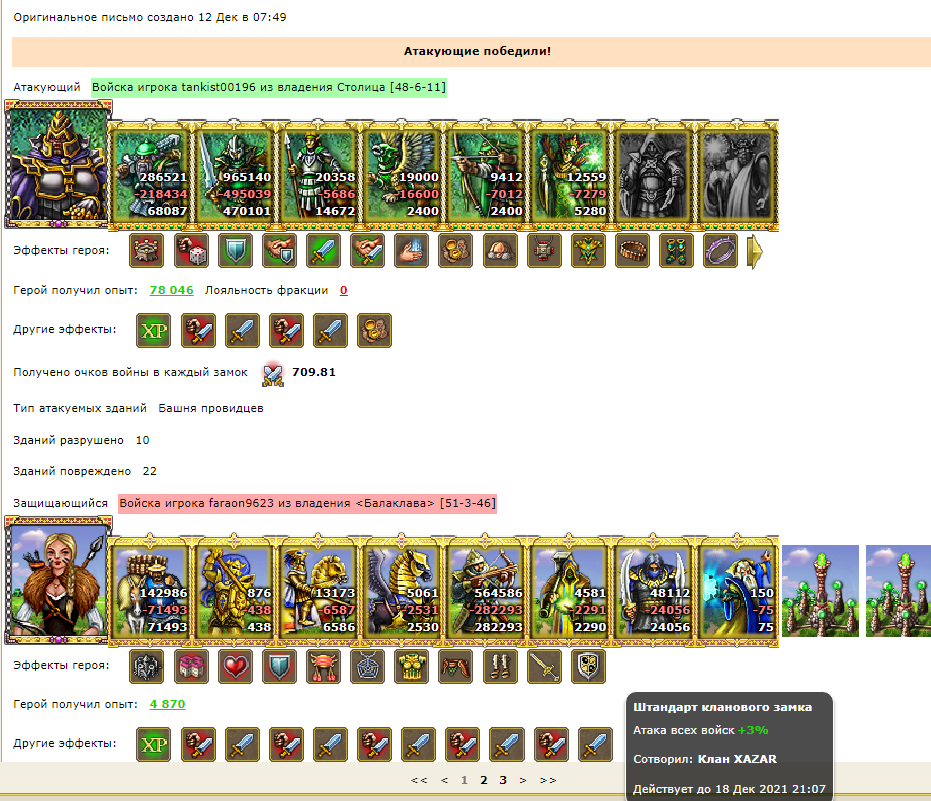 GIZMO2000 писал(а):Ночью меня разбудил соклан и сообщил об атаке, Simbiotik за пару дней до этого прилетел ко мне на фз, не знаю что он хотел, там постоянно ко мне кого-то селят, наверное план объедать меня, хз. В общем, Simbiotik накастовался прилично, включая бесстрашие и начал бегать по моим побочкам. То выходил, то, когда слишком долгая атака получалась, он отменялся (боялся ловли на возврате), но в какой то момент спалил он, где находятся два моих боевых героя, одного, который рядом был в лагере сковал, а на второго не обратил должного внимания, т.к. он находился в 12 клетках от моего стола и он посчитал, что опасности нет. Но в сумке был телепорт героя ::yaz-yk: