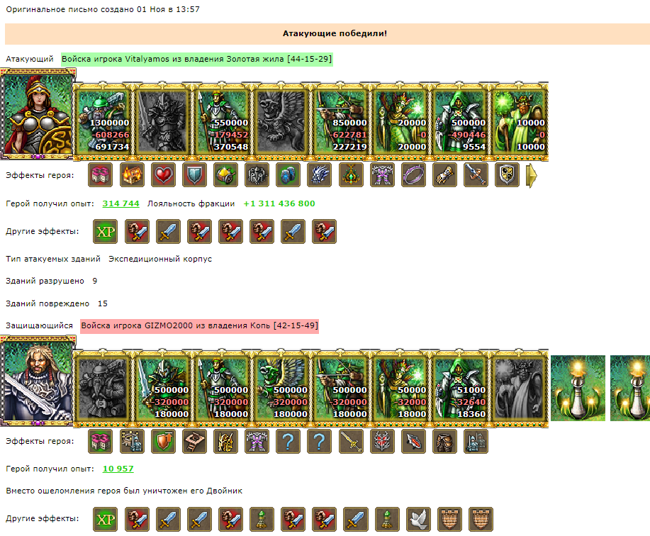 Примерно до 2015 года победитель определялся по соотношению потерь с учетом воскресителяGIZMO2000 писал(а): В новогоднюю полночь переписка с ним состоялась у соклановца, там глава начал прояснять за реал. Гизмо у него "задрот, с ним бессмысленно соревноваться". Я, кстати, не согласен, мне кажется киберспортсмен больше подходит, времена немножко изменились всё же.