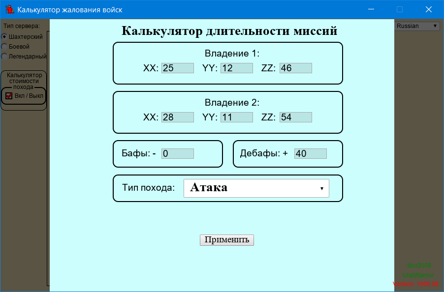 Воспользоваться калькулятором можно по НОВОЙ ссылке: КАЛЬКУЛЯТОР БОЯ MY LANDS, обновил bbv2008