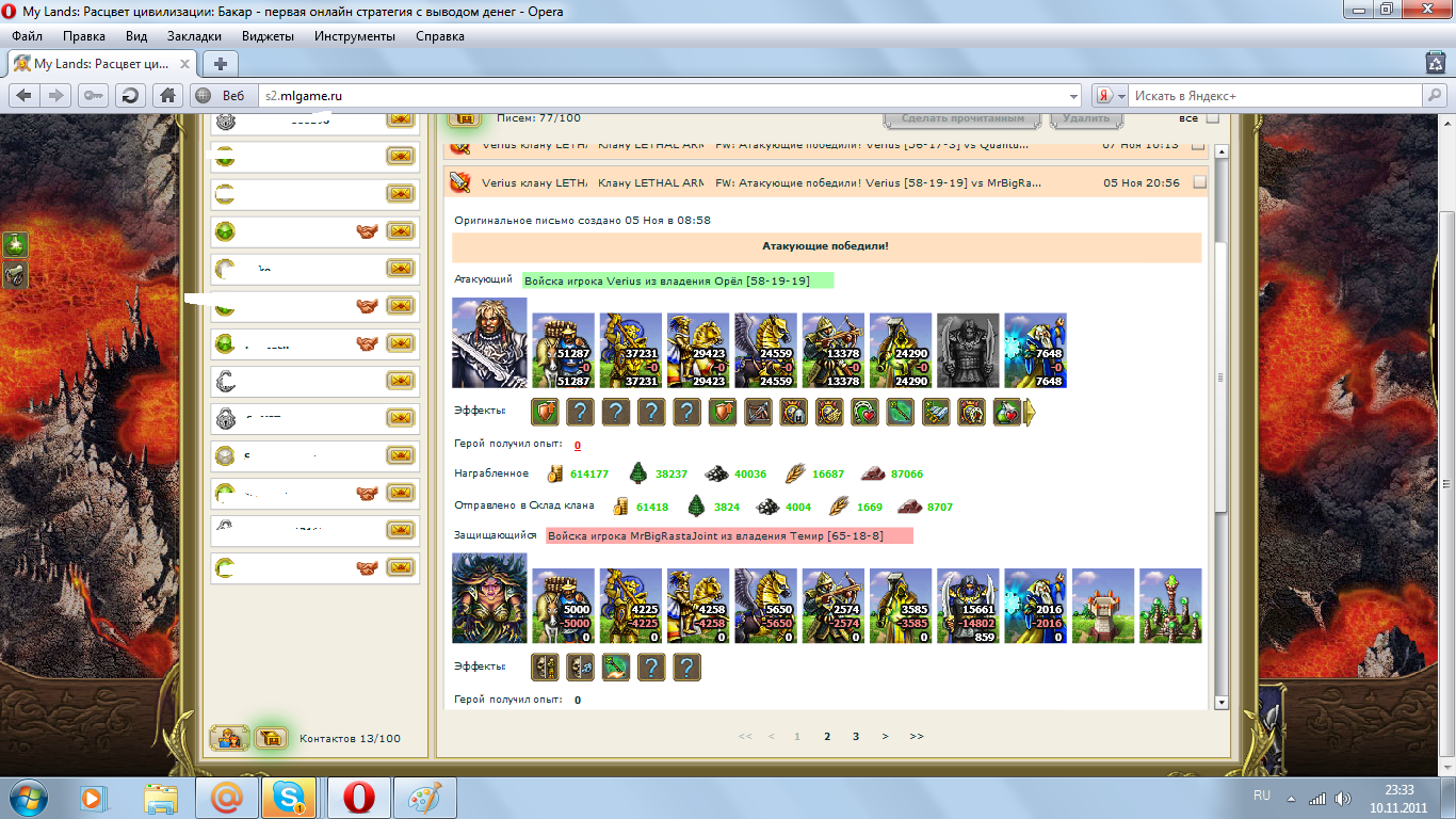 В бой вступил Egir19 при магической поддержке Silverivan.... Что ж, могу заметить, что лидеры леталов многому научились... в этот раз они решили защищать клан-копь. Конечно такие ньюансы как тот, что нельзя вытаскивать из подвала войска в минуту отдыха были им еще не знакомы - потому в первой атаке бесславно сгинуло 100К наймов, оставшиеся без поддержки своих собратьев из убежища, но КС устоял