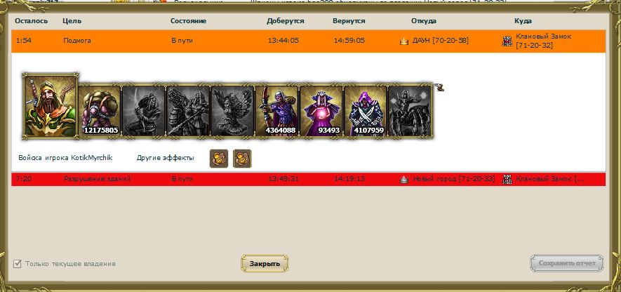 А в качестве экономии золота (в результате повышенного жалования злыми соседями ^_^) он придумал классную идею - на ночь отправлять основу на медленной скорости в подмогу 2* игроку, что и привело к следующему результату
