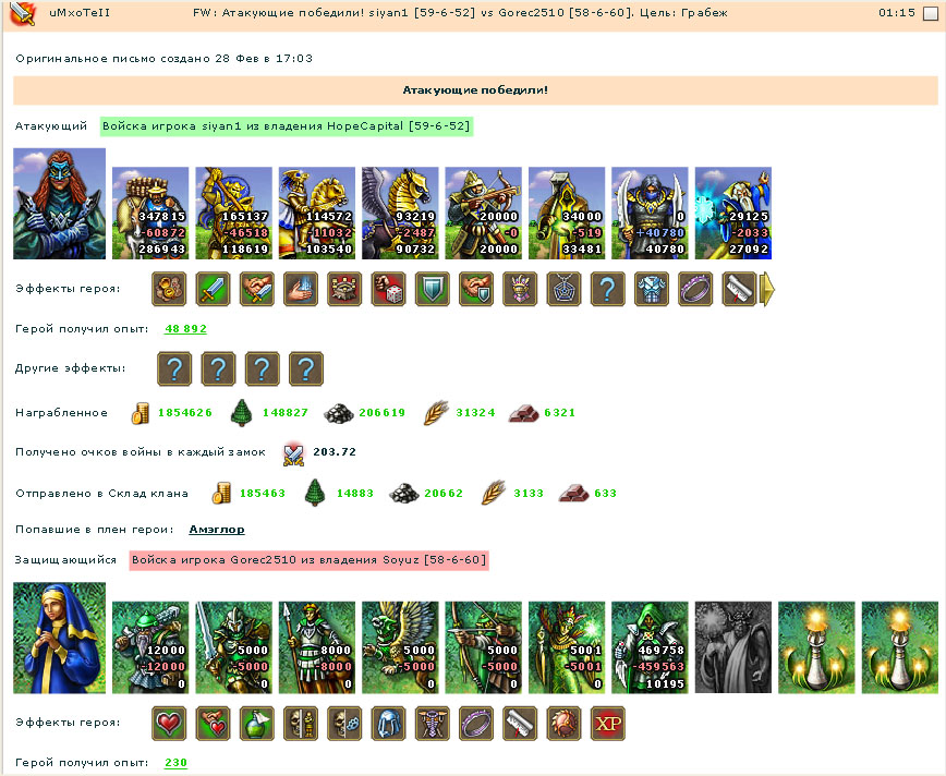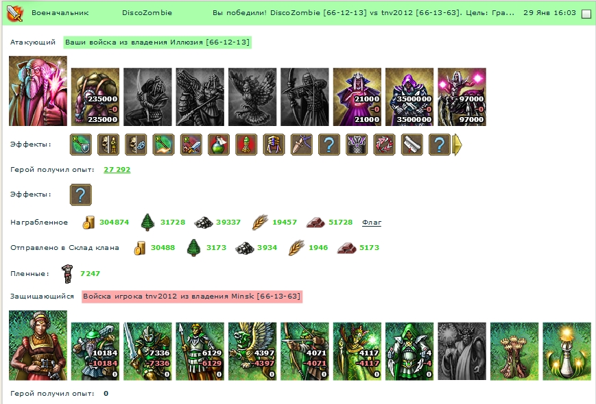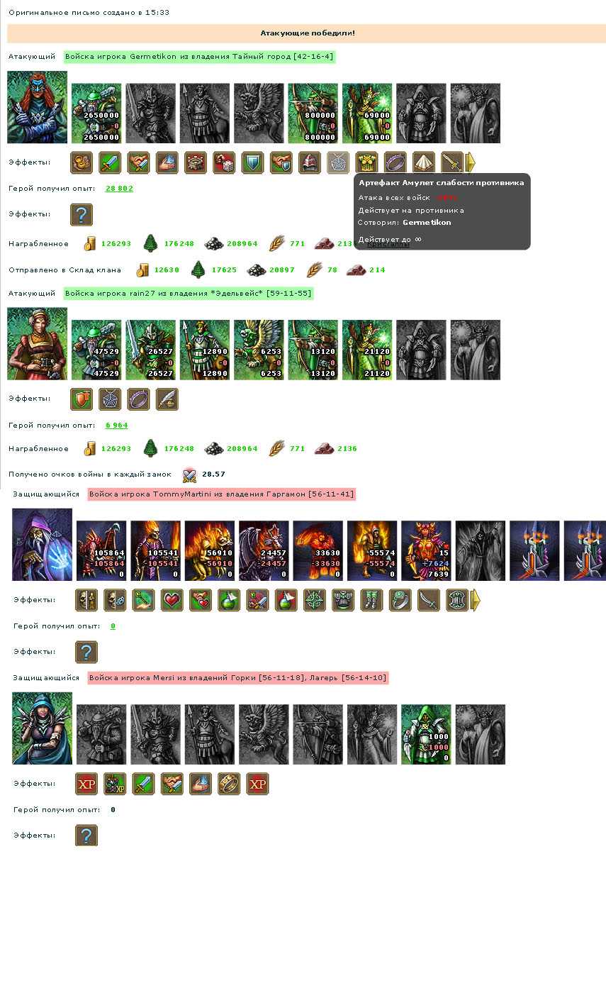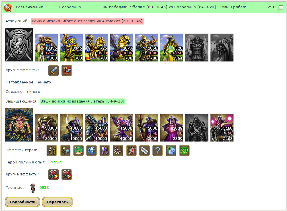 Правда нам повезло конечно мы рассчитывали на сильного волшебника с хорошими артами (тогда бы потери у грессера были бы ниже намного), а в итоге выпал слабый пал.