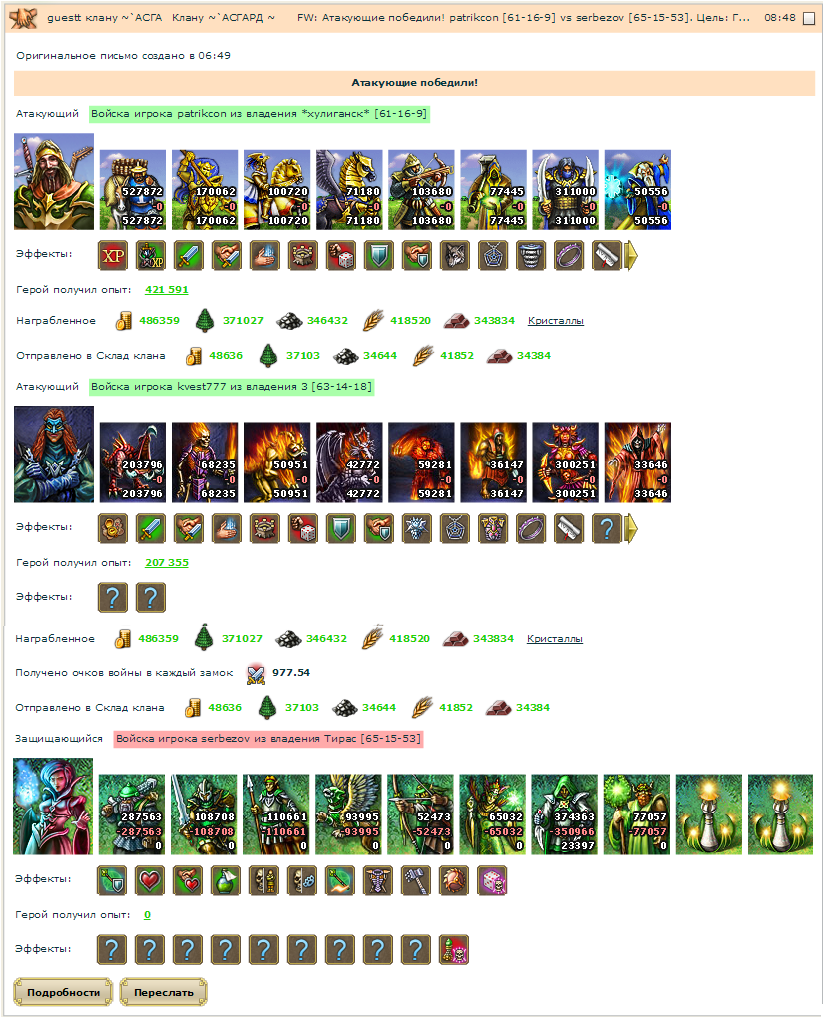 Особняком стоит состязание Воинов Света, Спарты и Альтер Эго за наследие заблокированного игрока sergdnepr.Гонку на 1ккк+ ФР из доступных 1,5ккк ФР выиграл serbezov (оставшиеся 0,5 ккк ФР добиты Спартой), выход в одиночку прошел с потерями, в результате смотрим красивый бой: