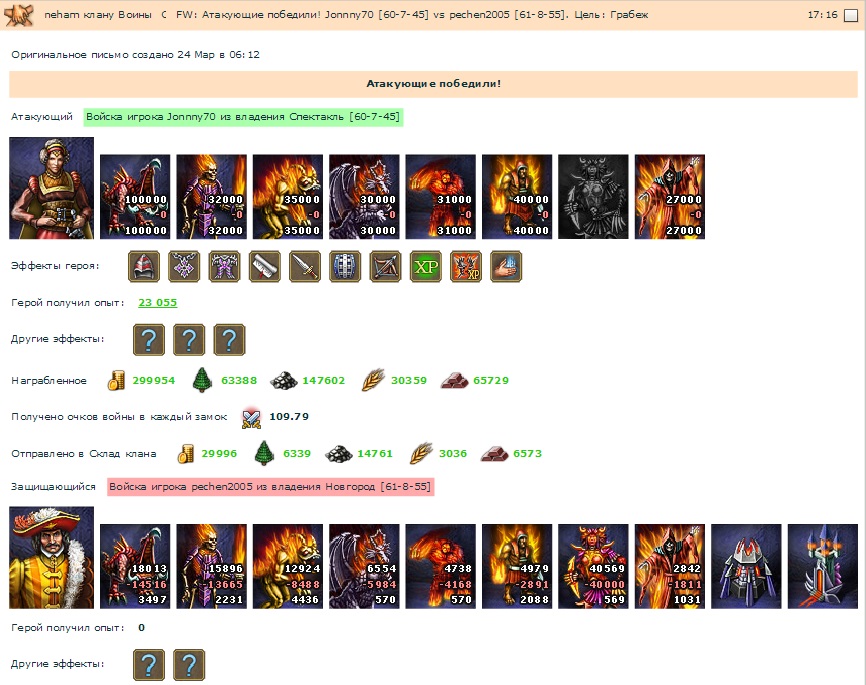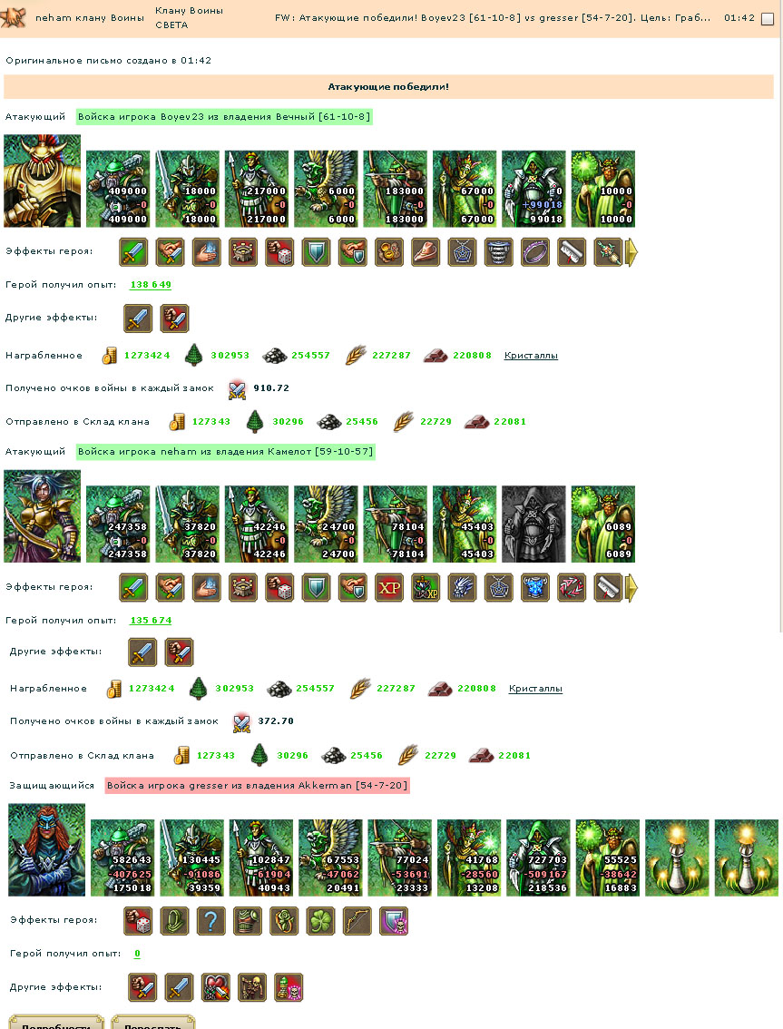 Упрется то он конечно упрется. Но многие надеются, и я думаю все таки это в каком либо виде произойдет - фикс медлов. Конечно сильно их не пофиксят, но все же, это может сильно оживить боевку в игре, которая сейчас в большинстве своем заключается в сливе "забытых" армий и ловле новичков. И там уже будет далеко не факт что боевые кланы сможете сдержать, тем более что игроков в клане много, а серьезных бойцов среди них единицы.Boyev23 писал(а):Ты же совершенно верно отметил как то, что тому кто достаточно знает о нашей игрушке и навредить то особо нельзя, и как кто то другой совершенно верно отметил - в этой игрушке нельзя слить того, кто этого не хочет. И вот с этой задачей как раз и справляеться Наш клан Воины Света - создавать интересное и уютное времяпровождение в виртуалке. Боевой маленький клан рано или поздно упрется в сапоги и храмы, и умрет от скуки, а мы были и будем существовать.