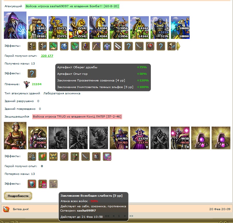 Tonick55 писал(а):хотелось бы обсудить бой от 20 числа. почему атакер слился? ведь было много логов где меньшая по количеству арма одерживала верх.