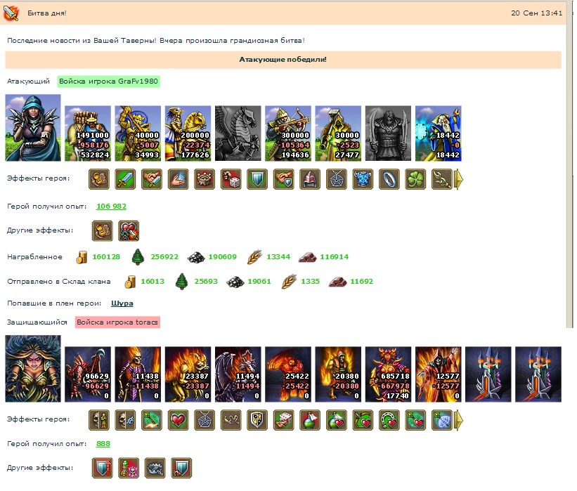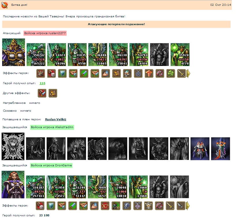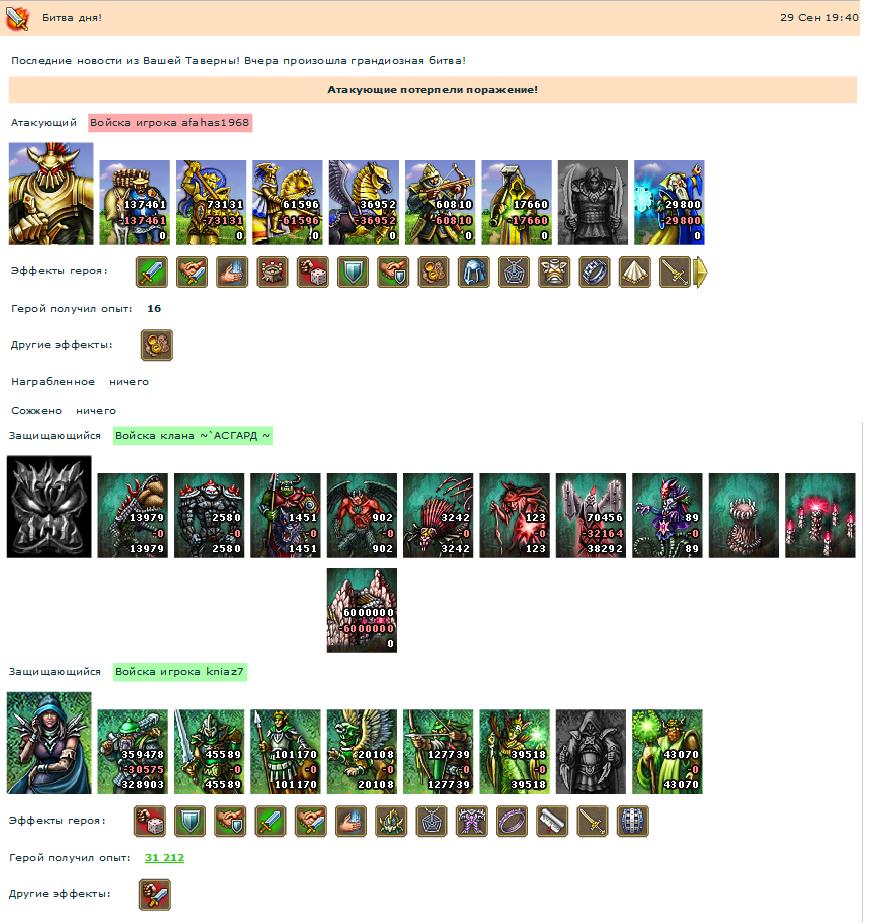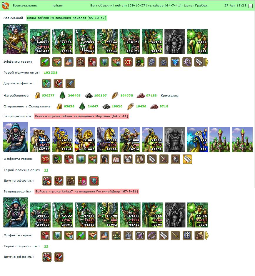 Подняли они воскрешением по 2кк найма, квестами, артами, свитками разогнали атаку. Спрятали под маскировкой армии, но спалились перед выходом (мы поймали момент, когда герои с раздутием были в подвале).