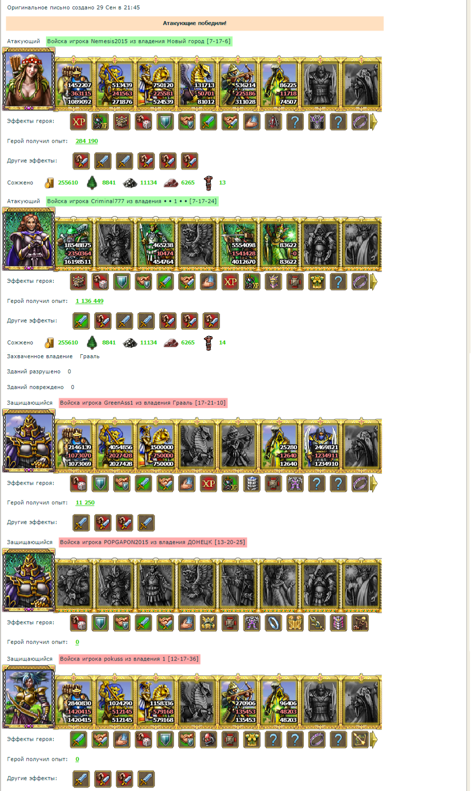 Леков, наймов вы не посчитали, не учли что геры защитников ошеломлены а значит 3 дня нет фарма, нет фарма нет ресов на клеп. Что касается Solnyshkin все знают что он сидит и на piksel2, который передал ему акк после слива от рушана. Также Solnyshkin принадлежат кланы мультов: NAG, ВестникиТьмы, Обесбашенные, с которых он каждый день берет рабов, золото с их КЗ в обход системы4178 писал(а):Какието странный подсчёты...Dog20162016 писал(а):У защитников потерь больше в 2 раза как минимум