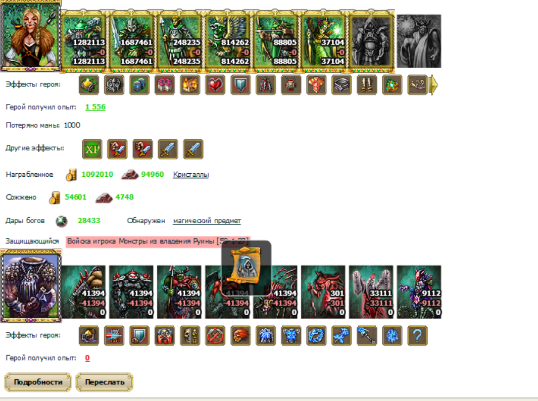 Только после того как сделал все необходимые действия для безопасного и быстрого похода я смог выехать дальше и неспеша тянутся в пробке на свою любимую работу. Добравшись в офис и немного успокоив свое волнение, захожу в игру и проверяю как идет поход, к моей радости, все проходит спокойно и без происшествий. И вот приходит долгожданное сообщение о столкновении моих войск во главе которых стояла доблестный герой "воительница". Как показал отчет боя, несметные полчища монстров, которыми меня пугал "ИУДА", по факту оказались не такими страшными (не так страшен черт, как его рисуют