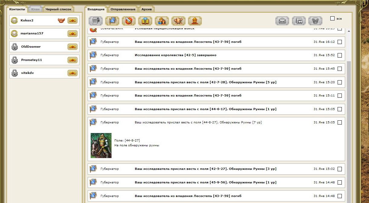 Начал играть где-то в 2011 году, игра завлекла с головой, интересная, требующая размышлений, риска, появились новые знакомые - одноклановцы, встречались в реале, справляли новый год. В те времена для каждого игрока была заветной мечтой найти эту редчайшую архируину и тогда это было действительно редко. Но шли годы, игра развивалась, начались объединения серверов, которые кому то понравились, а кому то нет, клан мой из-за этих переездов рассыпался и желание конечно играть дальше упало, первый аккаунт удалил, но через некоторое время всё таки обзавелся новым, примерно в 2015 году, хотелось все таки понаблюдать за игрой, как она дальше будет развиваться, да и может быть архируина найдётся когда нибудь... Уже не помню сервер, на котором аккаунт завел, соседом оказался Кокос из вышеупомянутого рассказа, подкидывал сначала руин, помогал с квестами, потом снова переезд на другой сервер, позвал с собой, у меня вариантов не было, поехал. Оказались на Архоне, и так год за годом помогал и дальше с квестами, водил на агры, стоуны, я ресы скупал, мелкие руины стриг. Он позвал в свой клан на время турнира по кладу, пару раз принял участие, да, клан работает в этом слаженно, тут вопросов нет.