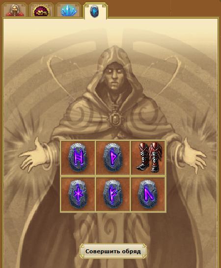 Во вкладке Рунмастера в Сокровищнице (и окне героя) можно совершать различные магические обряды с использованием Античных рун.